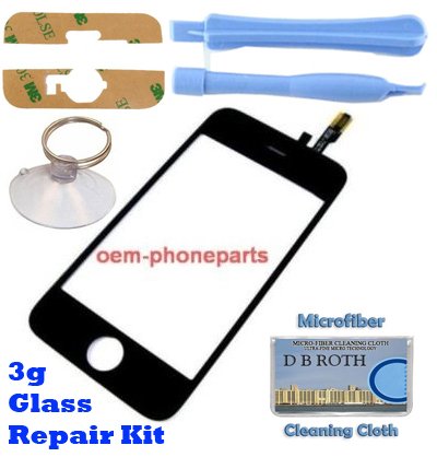 Apple IPhone 3G Replacement Front Glass and Digitizer -2 Tools, Suction Tool, Adhesive and Exclusive Microfiber DBROTH Cleaning Cloth Included - Repair Your Cracked Glass - with Microfiber Cleaning Cloth